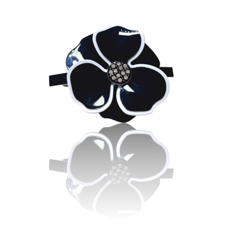 • Presilha Flor Camélia Preta e Branca De Acetato Com Strass
