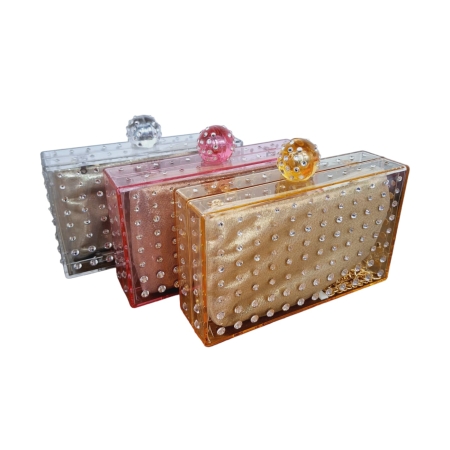 • Clutch Bolsa Festa de Acrilico Transparente De Mão Com Alça Quadrada