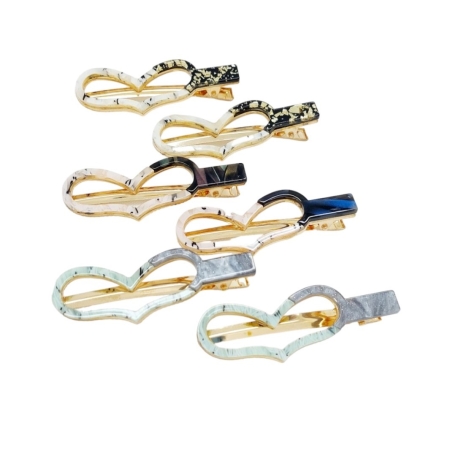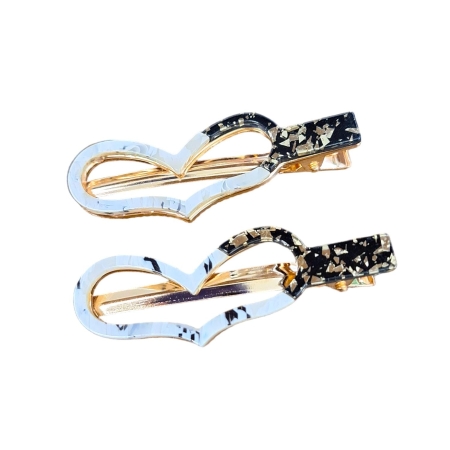 • Par De Presilha Em Acetato Formato de Coração e Detalhes Marmoreado