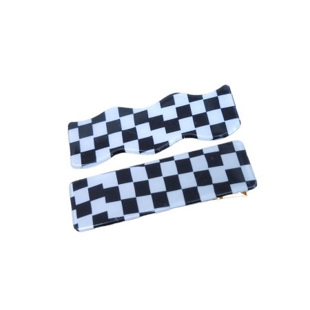 • Par De Presilha Bico De Pato Quadriculada Preto e Branco