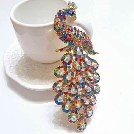 • Broche De Pavão Com Strass Cravejado Feminino