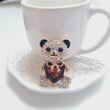 • Broche De Urso Com Coração de Pedra Cravejado