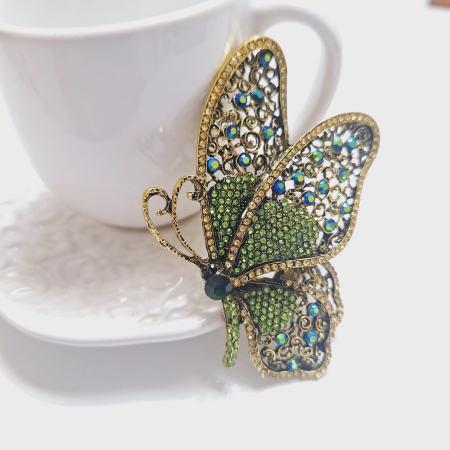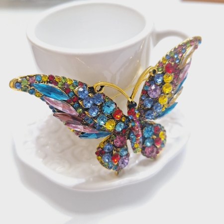 • Broche de Borboleta de Cristal Com Strass