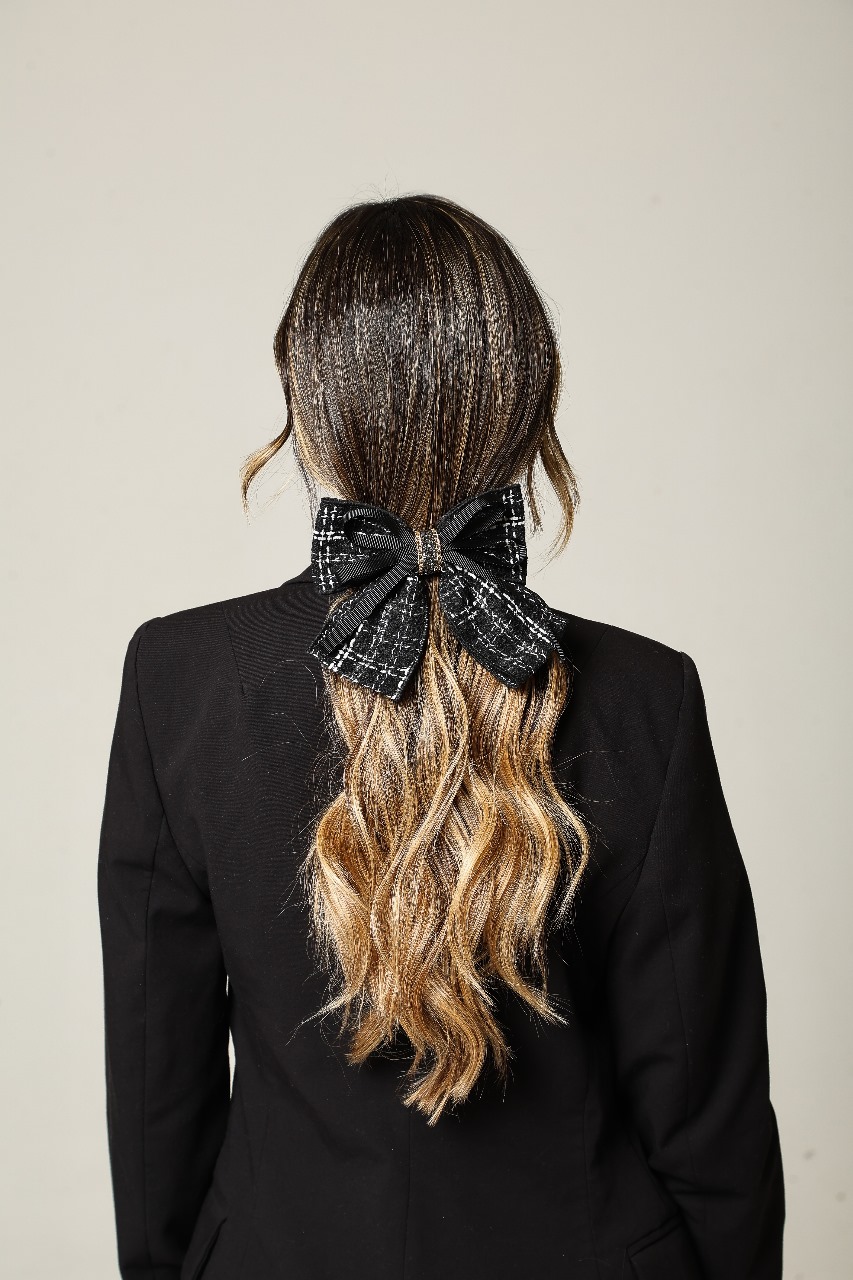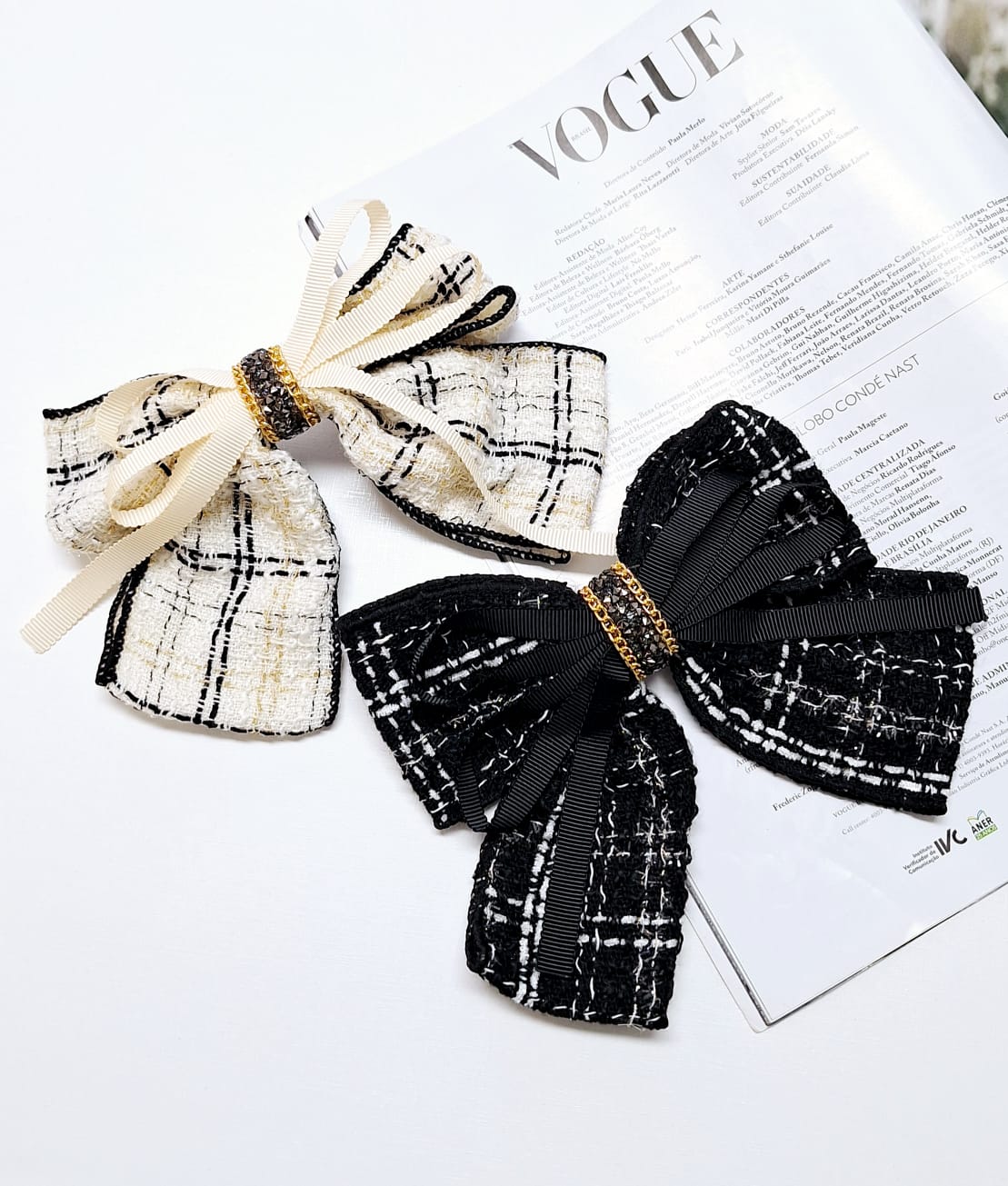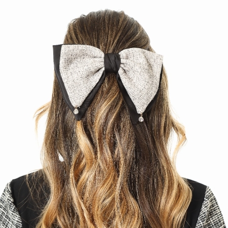 Presilha De Laço Tweed Com Strass De Brilho Feminino