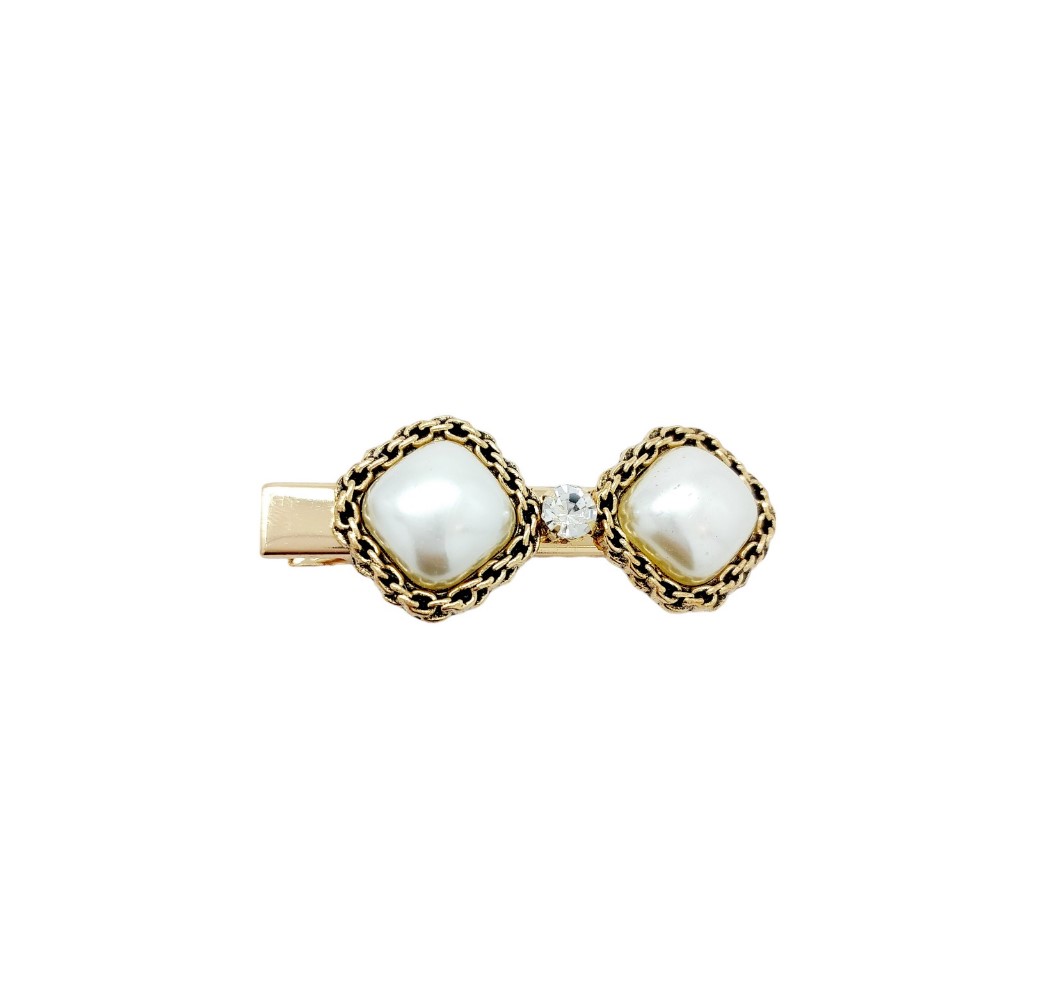 Bico De Pato de Cabelo de Metal Com Duas Pérola