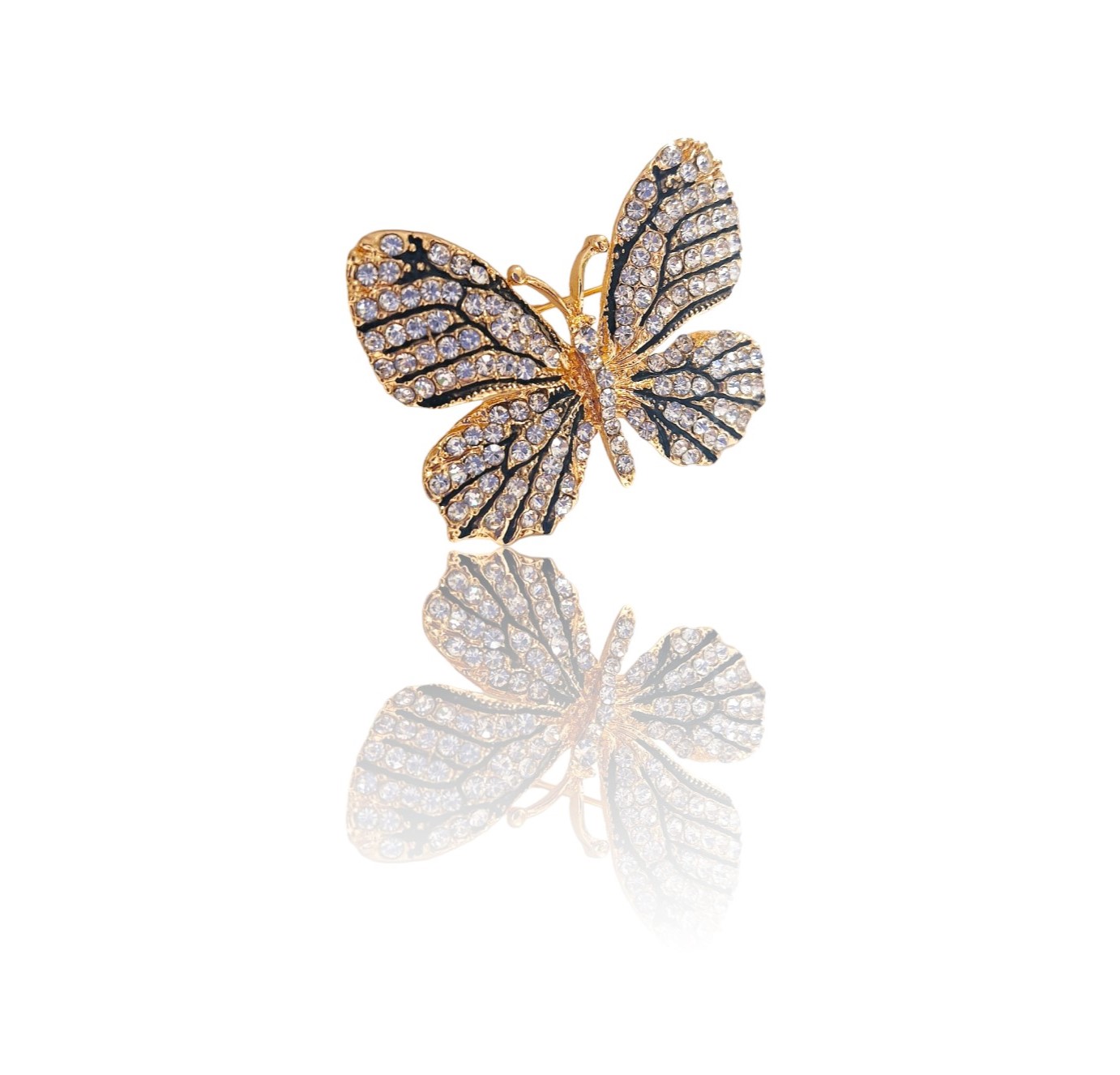 Broche Borboleta Cravejado Com Detalhes Preto Feminino