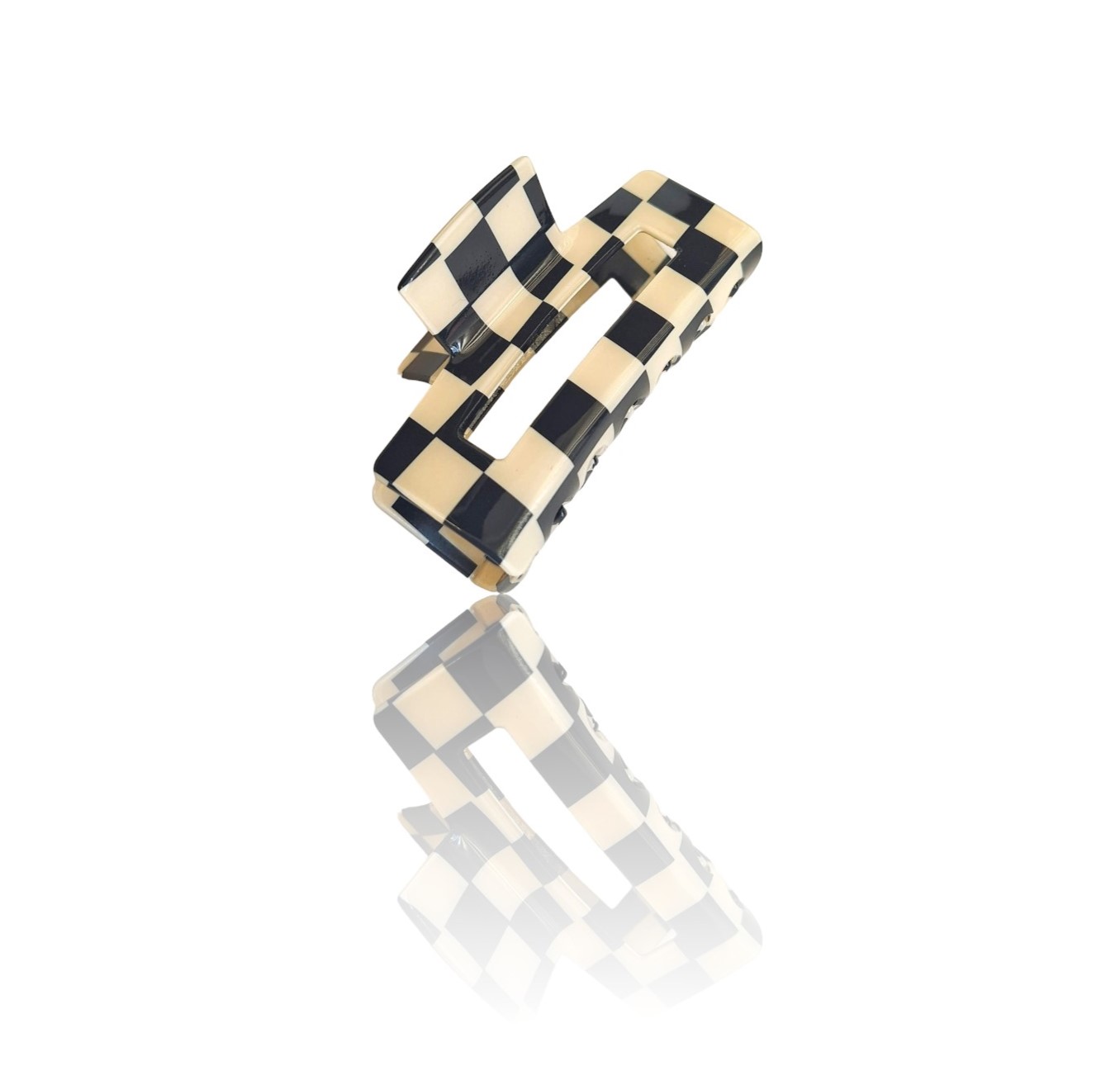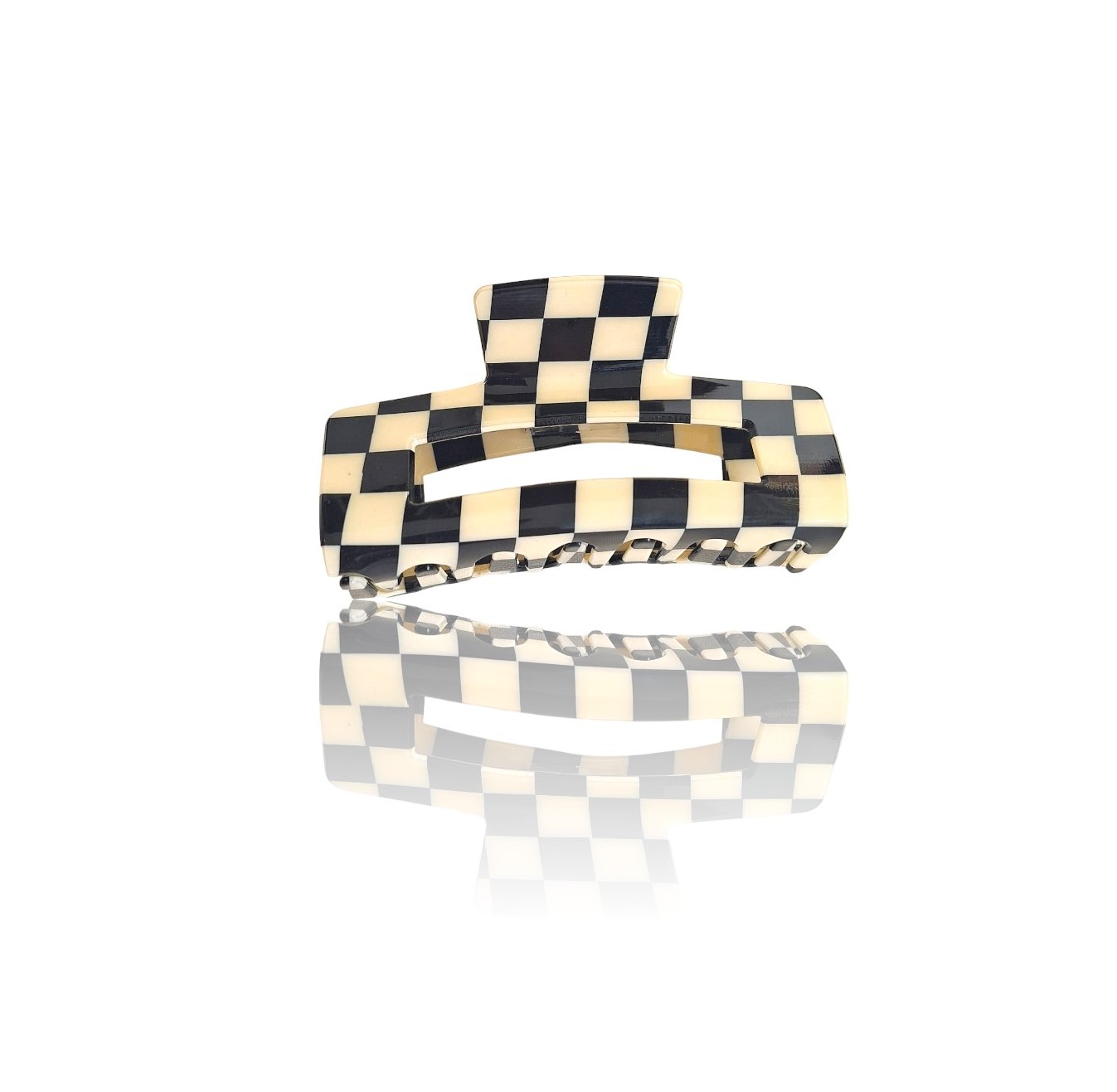 Piranha de Cabelo Quadrada Preta e Branca Grande Feminina Quadriculada