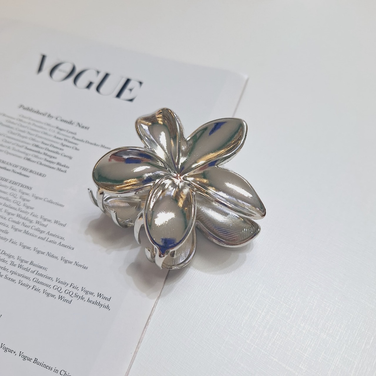 Piranha Elegante Flor Metalizado Ondulado Feminino