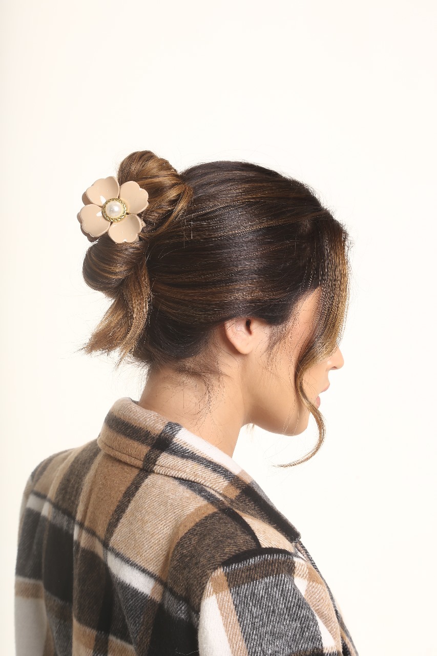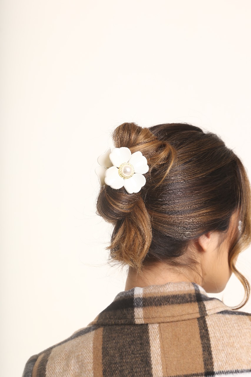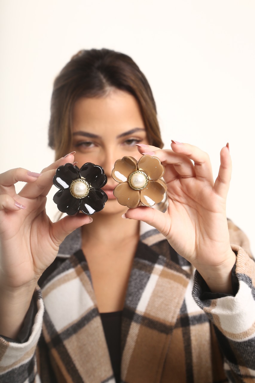 Prendedor de Flor Piranha Com Pérola e Acetato Feminino