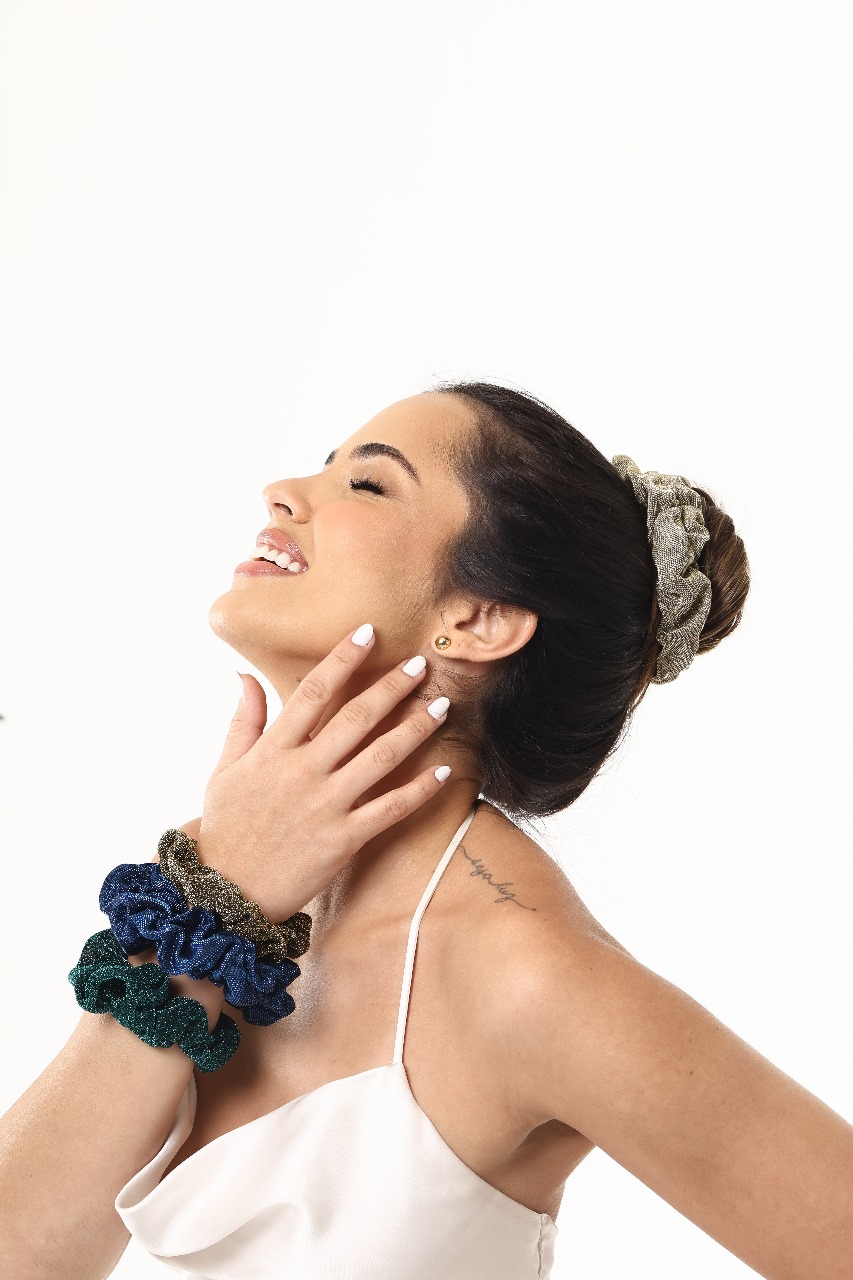 Scrunchie Lurex Com Brilho Feminino Tamanho Grande